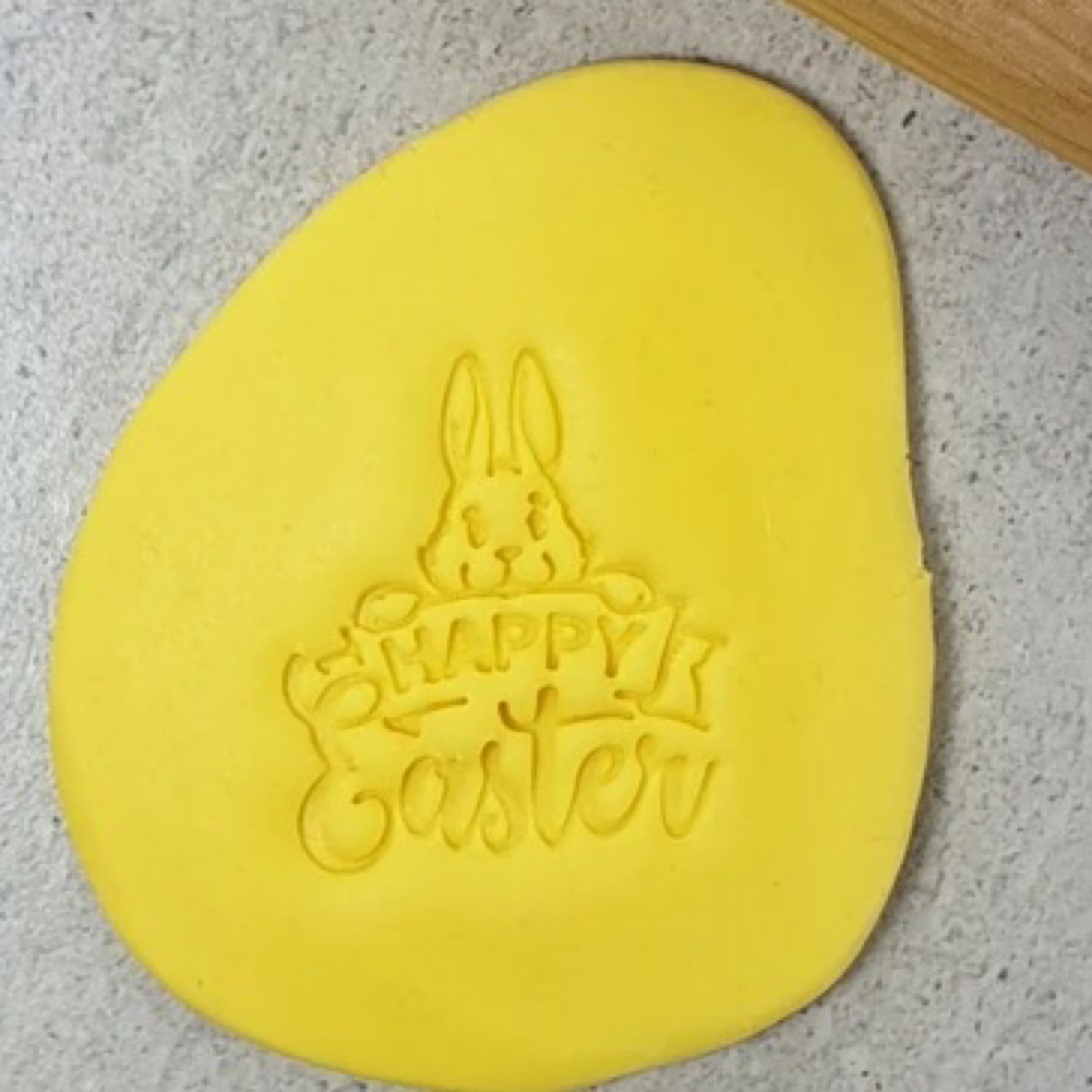 OLD – Custom Cookie Cutter Embosser Happy Easter Rabbit face top
