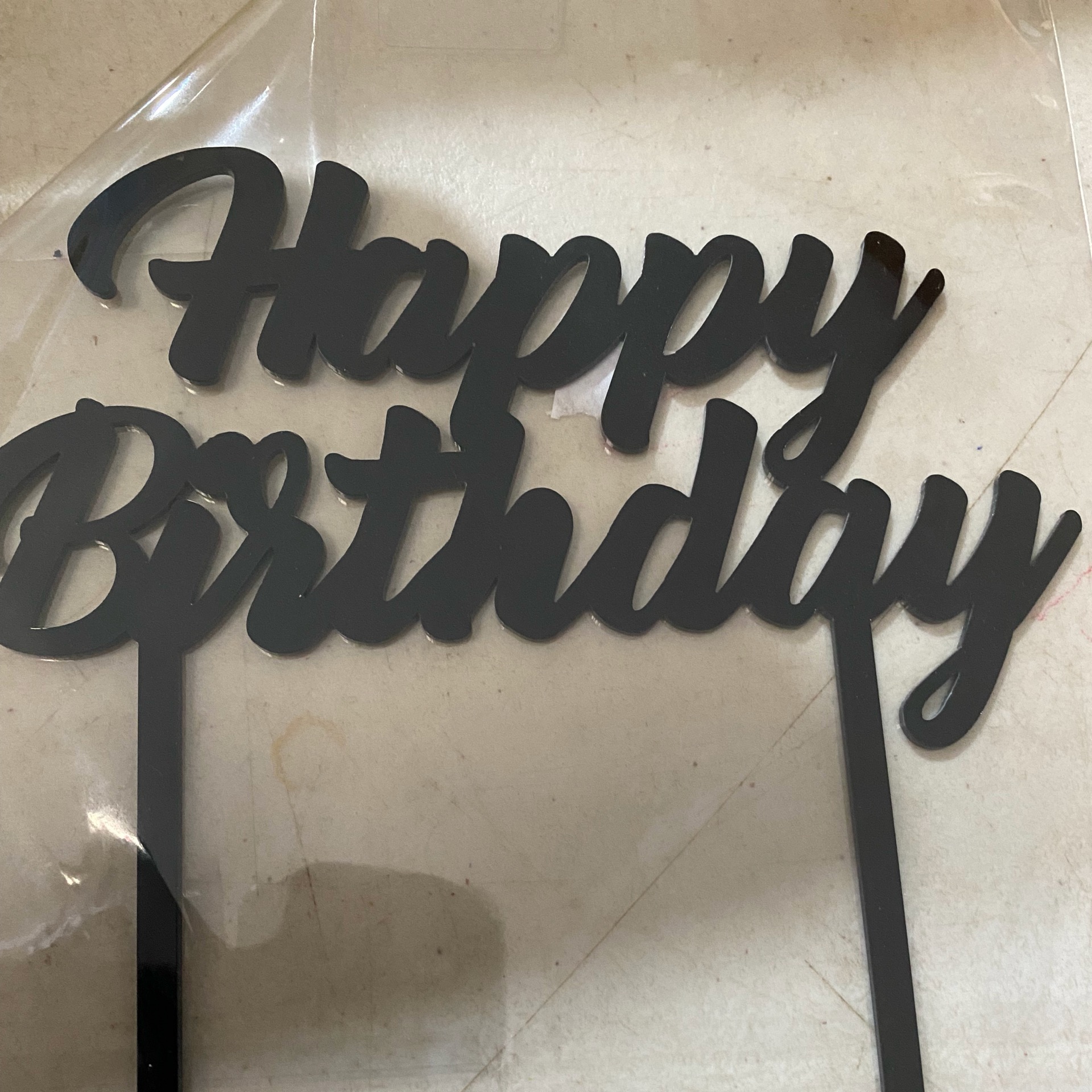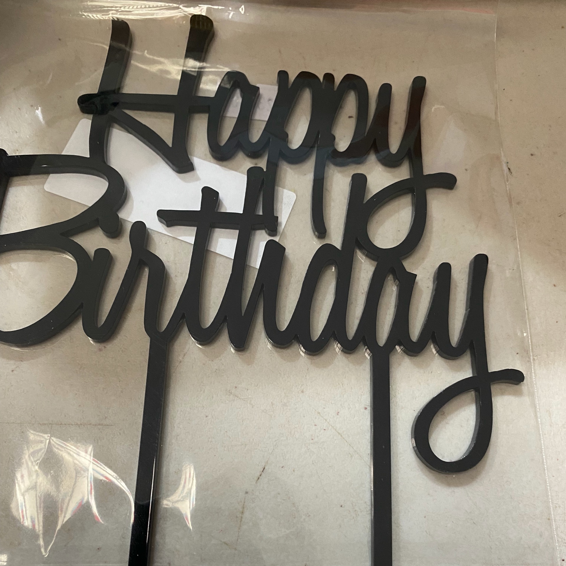 OLD – Topper Acrylic Happy Birthday Black med